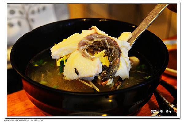 山記魚湯類提供「深海石斑」和「生猛海鱸」,吃的部位,深海石斑可以選擇魚頭、下巴、嘴邊肉、魚肉和魚肚;生猛海鱸可以選擇魚頭、下巴、魚肉和魚肚,最後再選擇「清湯」或「味噌」作為湯頭,相當的客製化。上圖為同行朋友點的海鱸魚湯,魚肉看起來好飽滿,下次點來品嘗一下。